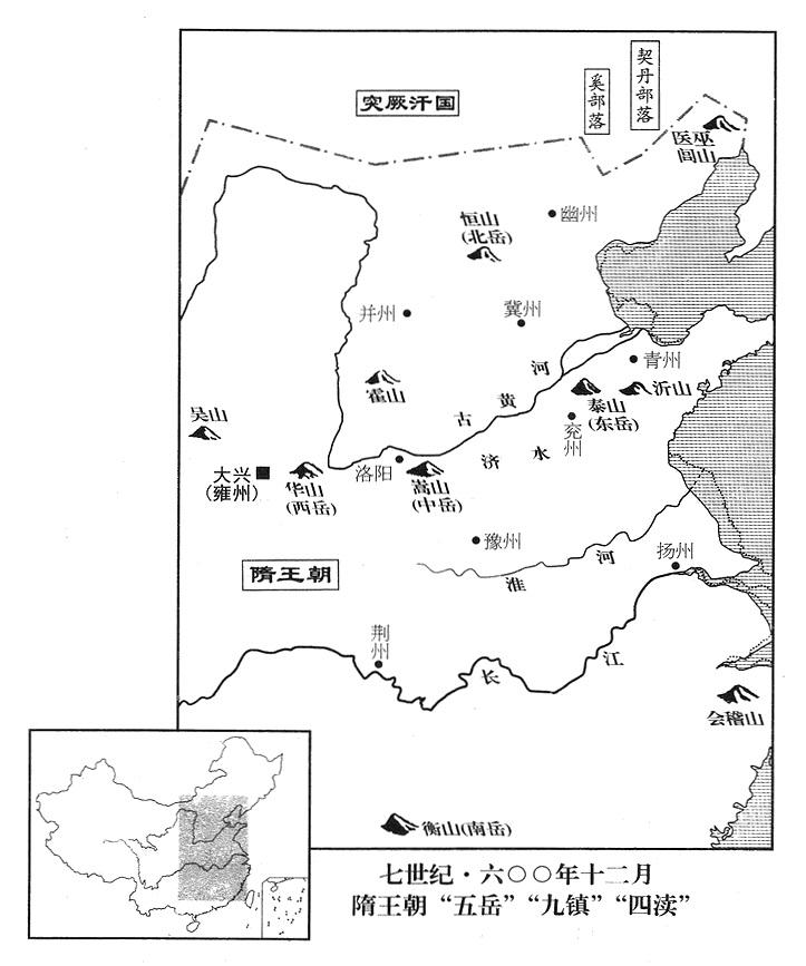 4、汉王杨谅(杨坚第五子)深受一任帝杨坚的宠爱,担任并州军区(总部设并州“〔山西省太原市〕”)总司令(并州总管),自崤山以东,直到东海;南到黄河,共五十二州(河北省及山西省),全属他的辖区;特别授他应变全权,不受法律规章拘束。杨谅认为他的辖区正是天下出精兵的地方,看到太子杨勇因受诬陷而被罢黜(参考六〇〇年十月),一直闷闷不乐。后来蜀王杨秀又受处罚(参考六〇二年七月),内心恐惧,越发失去安全感,暗中积极准备;告诉老爹杨坚说:“突厥(瀚海沙漠群)正在强大,应该整修武备。”于是大肆征调工兵差役,修理器械,集结亡命之徒,安置在左右的私人卫队之中,有数万人之多。突厥曾经攻击边境,杨坚命杨谅抵御,被突厥击败。所属将领免职的有八十余人,全都流窜岭表(南岭以南)。杨谅因他们都是多年老部属,上书请求留下,杨坚大怒说:“你身为镇守外地的亲王,只有遵守中央命令,怎么可以私下强调故旧关系,破坏国家法律尊严?老天,你这娃儿一没有了我,如果轻举妄动,他(指杨广)抓你像抓鸡笼里的小鸡一样,你那些心腹将领有什么用!”