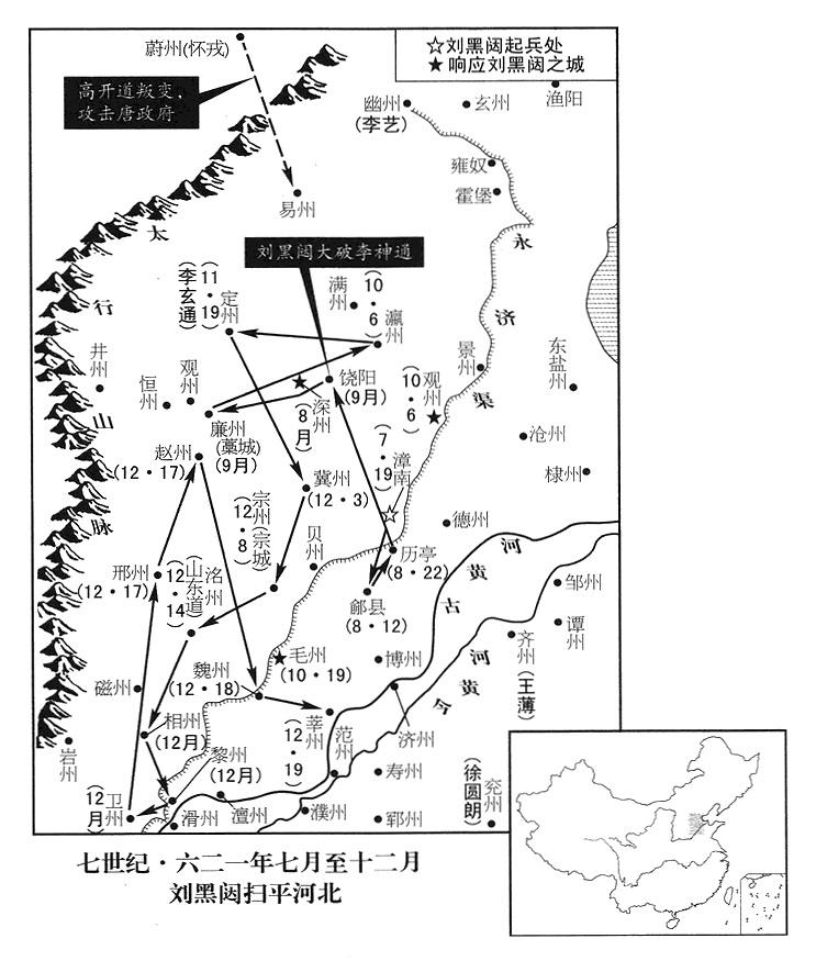 87、十二月十七日,变民首领刘黑闼攻克邢州、赵州。