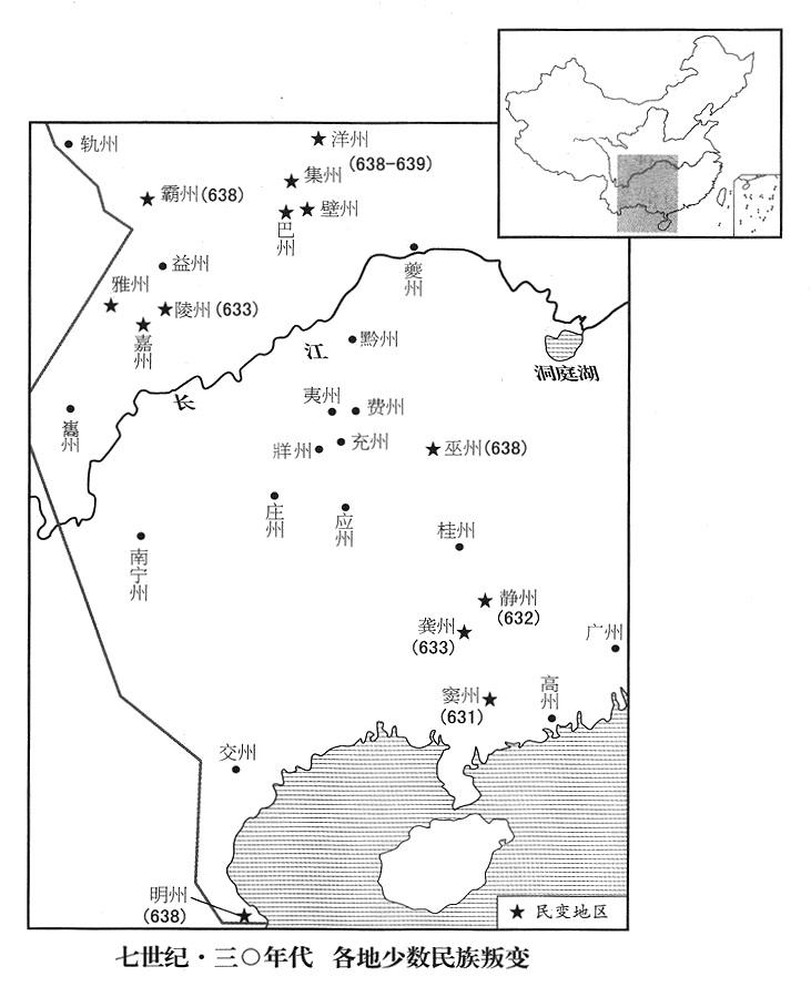 7、四月十三日,灵州(宁夏灵武县)斛薛部落叛变,任城王李道宗追击,把他们击破。(斛薛部落属铁勒汗国,原住蒙古肯特山。)