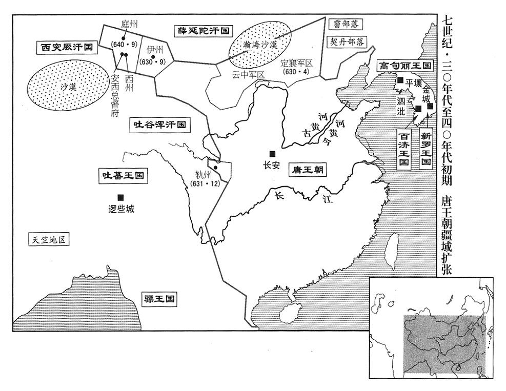 21、东突厥汗国既已灭亡,营州军区(总部设辽宁省朝阳市)总司令(营州都督)薛万淑,派契丹部落(辽河上游)酋长贪没折,前往游说东北各蛮族部落。于是,奚部落(滦河上游乌桓人)、霫部落(辽河以北匈奴人)、室韦部落(黑龙江省)等十余部,都归降中国。薛万淑,是薛万均的老哥。
