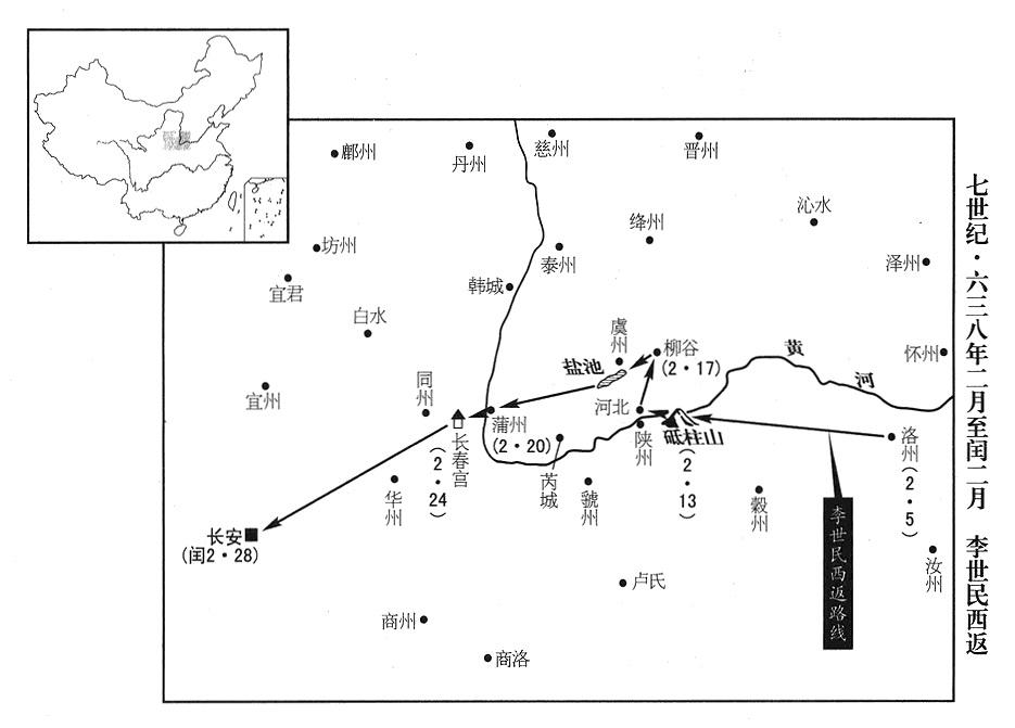 二月二十四日,李世民抵达长春宫(陕西省朝邑县境)。