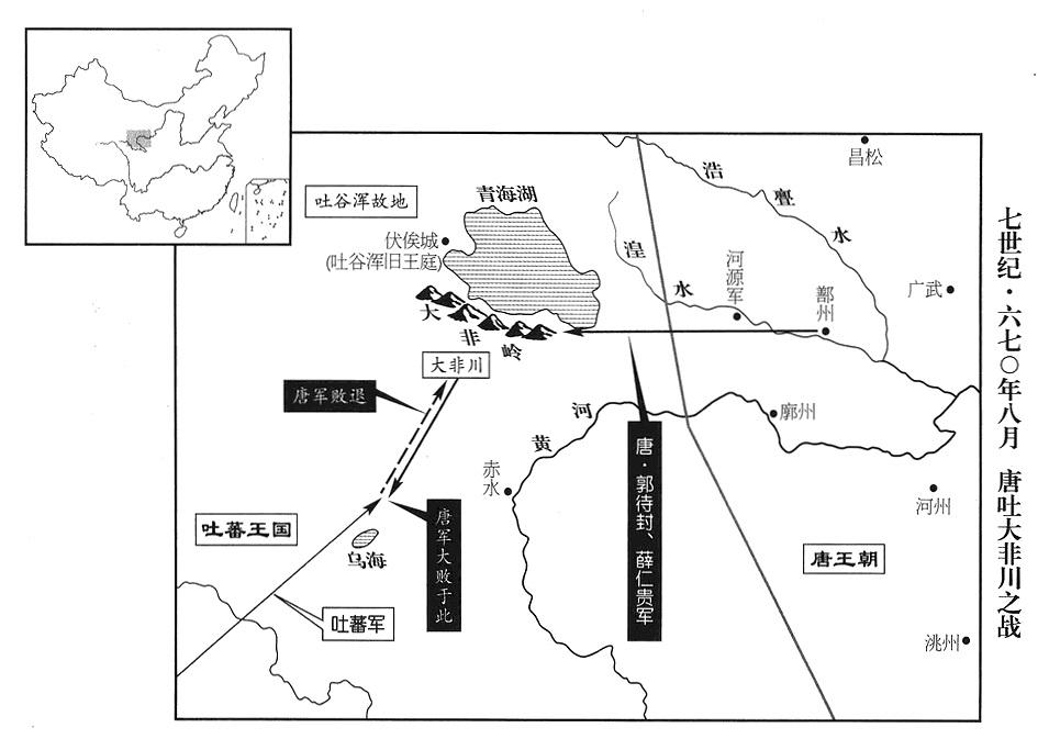5、秋季,七月,西方远征军、洮河兵团总司令官(洮河道大总管)李敬玄奏称在龙支(青海省乐都县南)击破吐蕃军。
