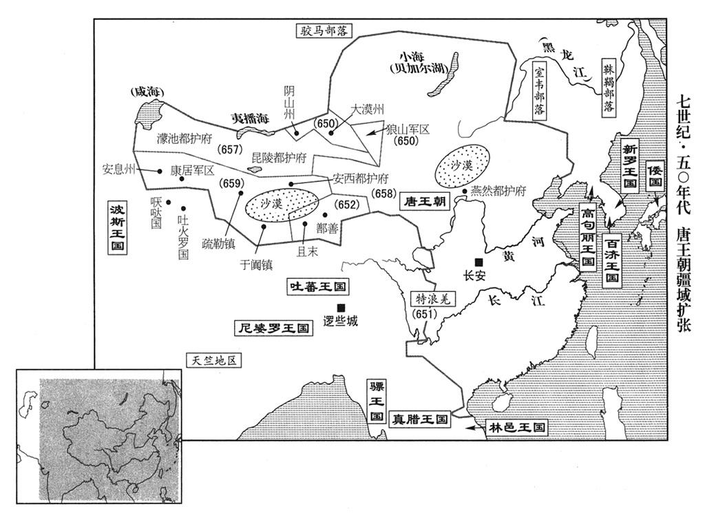 19、本年,百济王国(首都泗沘“〔韩国扶馀市〕”)派使节前来唐帝国朝贡,李治警告他说:“不要和新罗(首都金城“〔韩国庆州市〕”)、高句丽(首都平壤“〔朝鲜平壤市〕”)互相攻击,否则,我就出军对你们讨伐(百济攻新罗,参考六四八年九月)。”